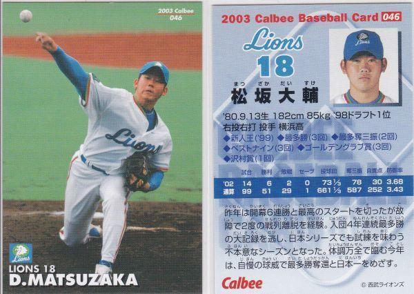 > ●2003カルビー【松坂 大輔】 BASEBALL CARD No.046:西武 R2