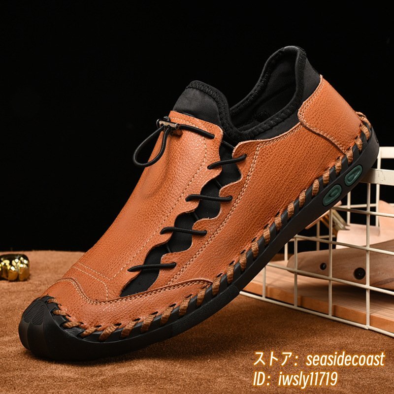 - 人気新品■ウォーキングシューズ メンズ ローファー 本革 レザーシューズ 軽量 スニーカー 高級 スリッポン 紳士靴 通気性 ブラウン 27.0cm