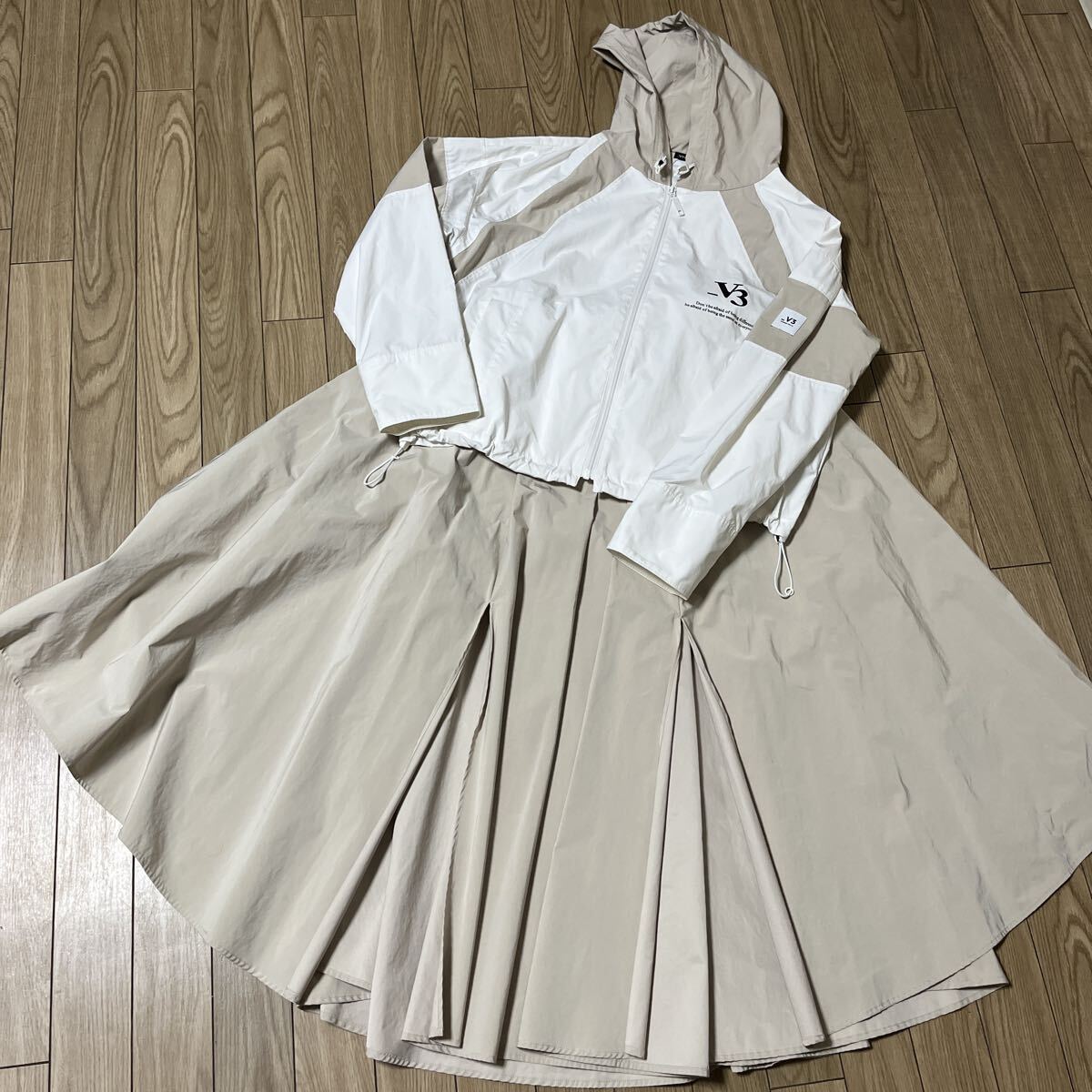 - ヴィヴィアンタム V-3 ナイロンパーカー ロングフレアーアシメスカート セットアップ ベージュ×白38