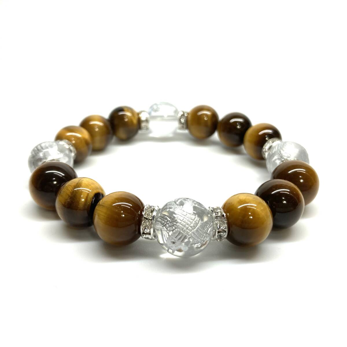 - 四神獣銀彫水晶×タイガーアイ 12mm パワーストーン ブレスレット天然石 青龍 白虎 玄武 朱雀 運気上昇 お守り 金運 四神獸 四神相応 S