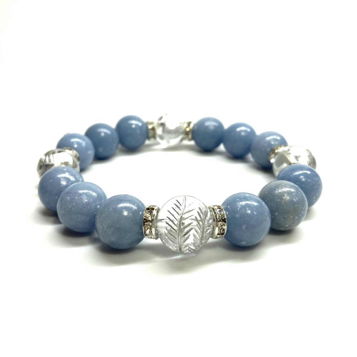 - 四神獣銀彫水晶×エンジェライト 12mm パワーストーン ブレスレット天然石 青龍 白虎 玄武 朱雀 運気上昇 お守り 金運 四神獸 四神相応 S
