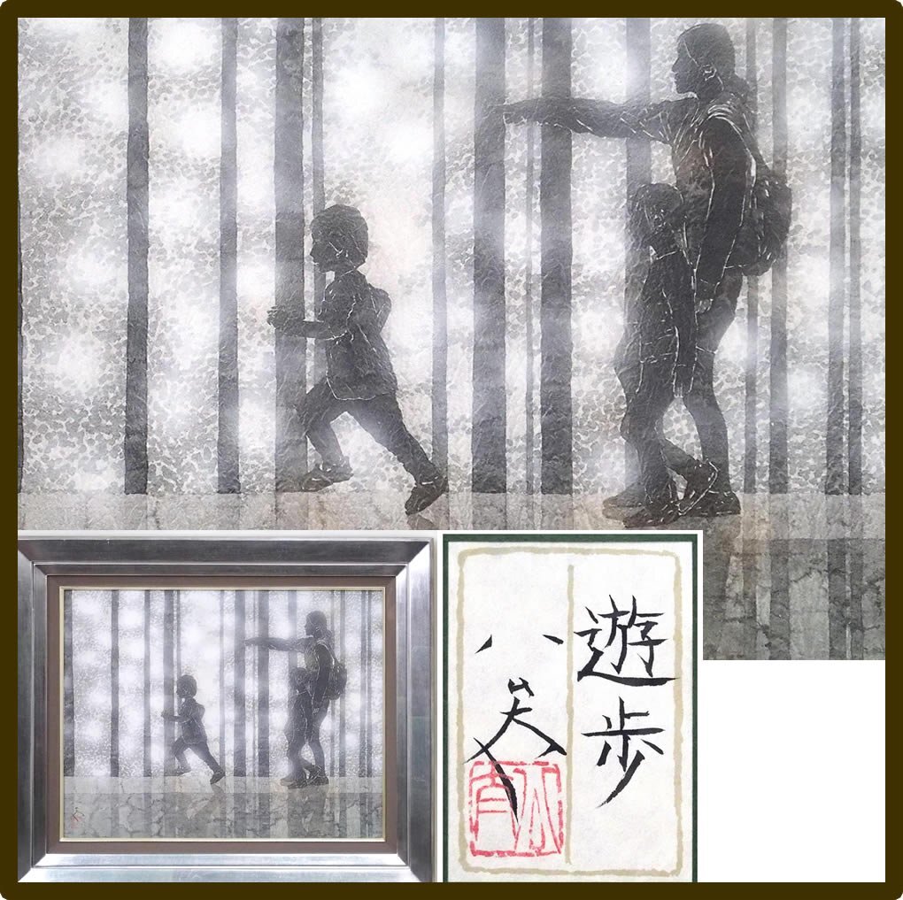 ■作品紹介 「遊歩」松村公太による落款・共シール有りの紙本彩色10号です。 1978年愛知県生まれ。2001年金沢美術工芸大学卒業。2005年東京藝術大学大学院修了。終了制作がサロン・ド・プランタン賞受賞。2006年シルクロード文化財保護フェローシップ・中国北京研修。2008年東京藝術大学大学院博士課程修了。博士号(文化財)習得。個展・グループ展多数。現在、日本美術院院友。2024年美術市場に号6万円で掲載。