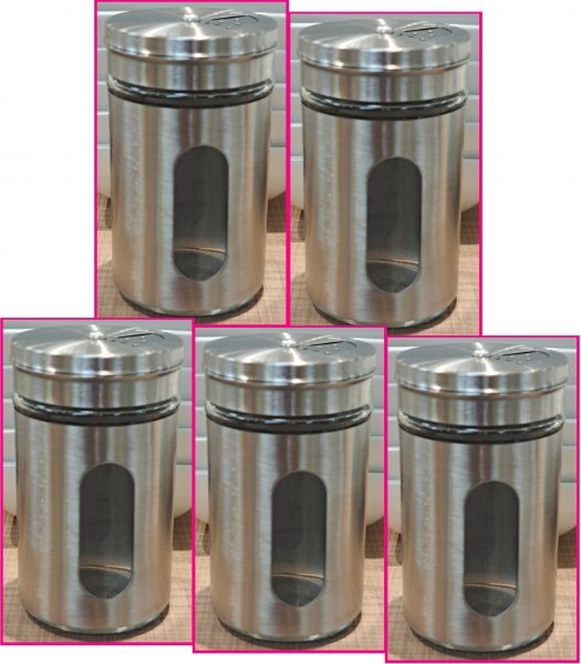 - 【5点:スタイリッシュな調味料入れ:ステンレス & ガラス】★ペッパー/胡椒/コショウ/こしょう・塩/しお・唐辛子,七味