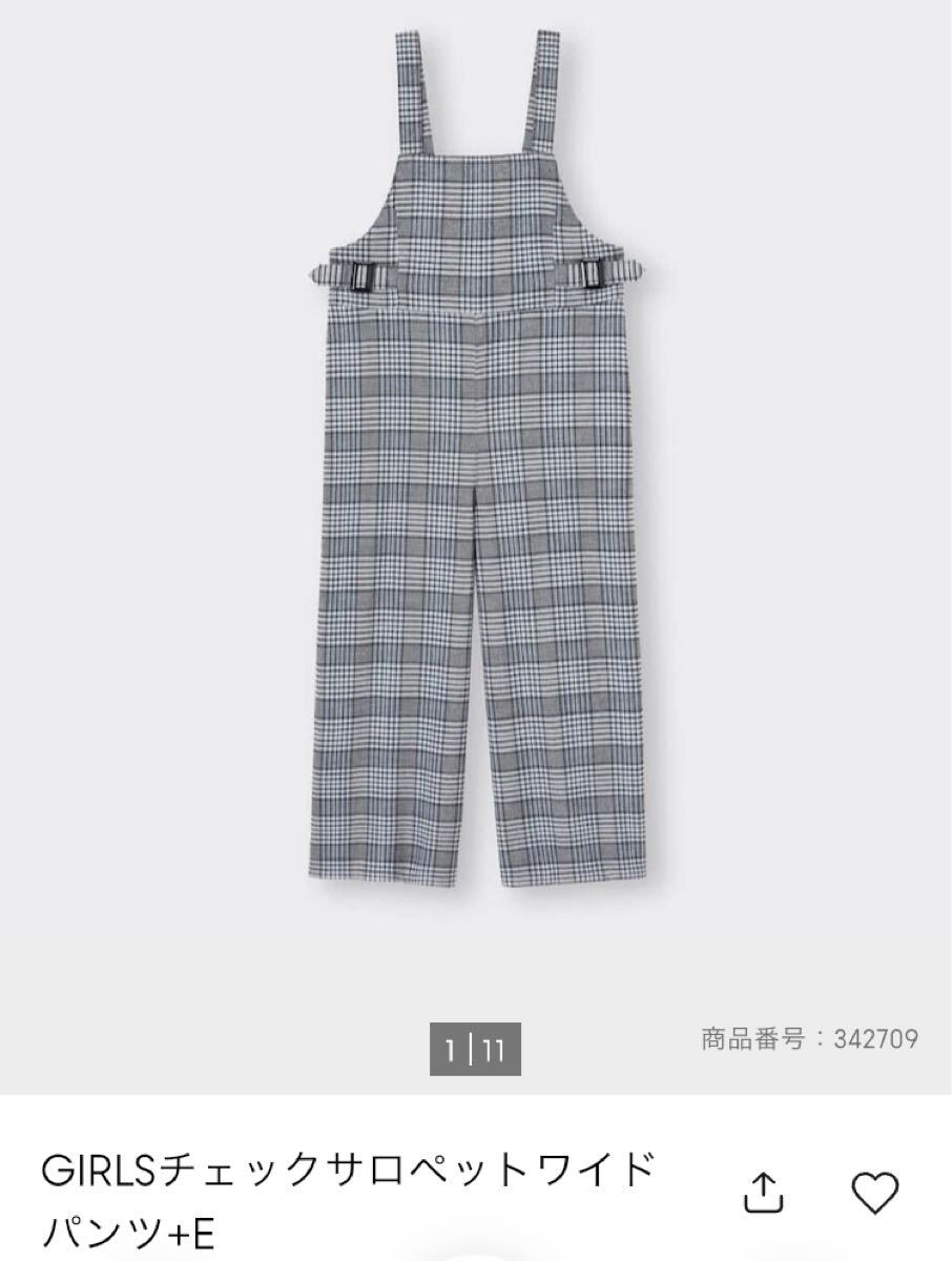 > GU GIRLSチェックサロペットワイドパンツ+E サイズ130 ブルー