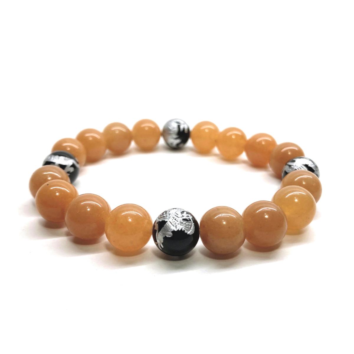 - 10mm 四神獣銀彫オニキス×レッドアベンチュリン パワーストーン ブレスレット天然石 運気上昇 開運 金運 恋愛 青龍 白虎 玄武 朱雀 ☆