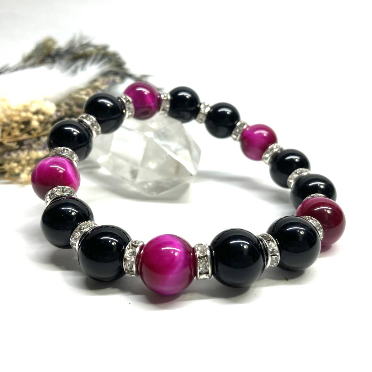 - モリオン&ピンクタイガーアイ パワーストーン ブレスレット 天然石ブレス (シルバー) 12mm 幸運 開運 メンズ 男性