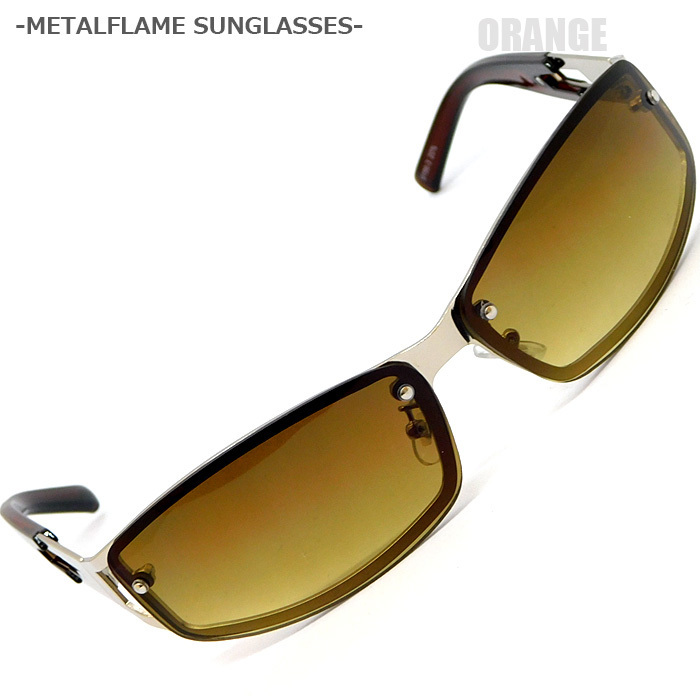 - 送料無料 チョイ悪系 オラオラ系 サングラス メンズ UVカット スクエア バイカーズ ドライブ 伊達メガネ メタルフレーム ブラウンハーフA□
