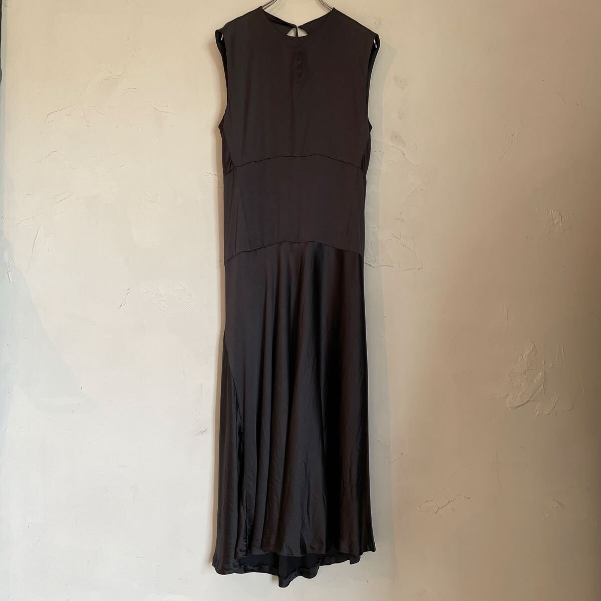 - カルバンクライン イタリア製 シルク100 背中開き デザイン ロングワンピース 5 calvin klein ドレス 結婚式 ブラック 黒 ノースリーブ