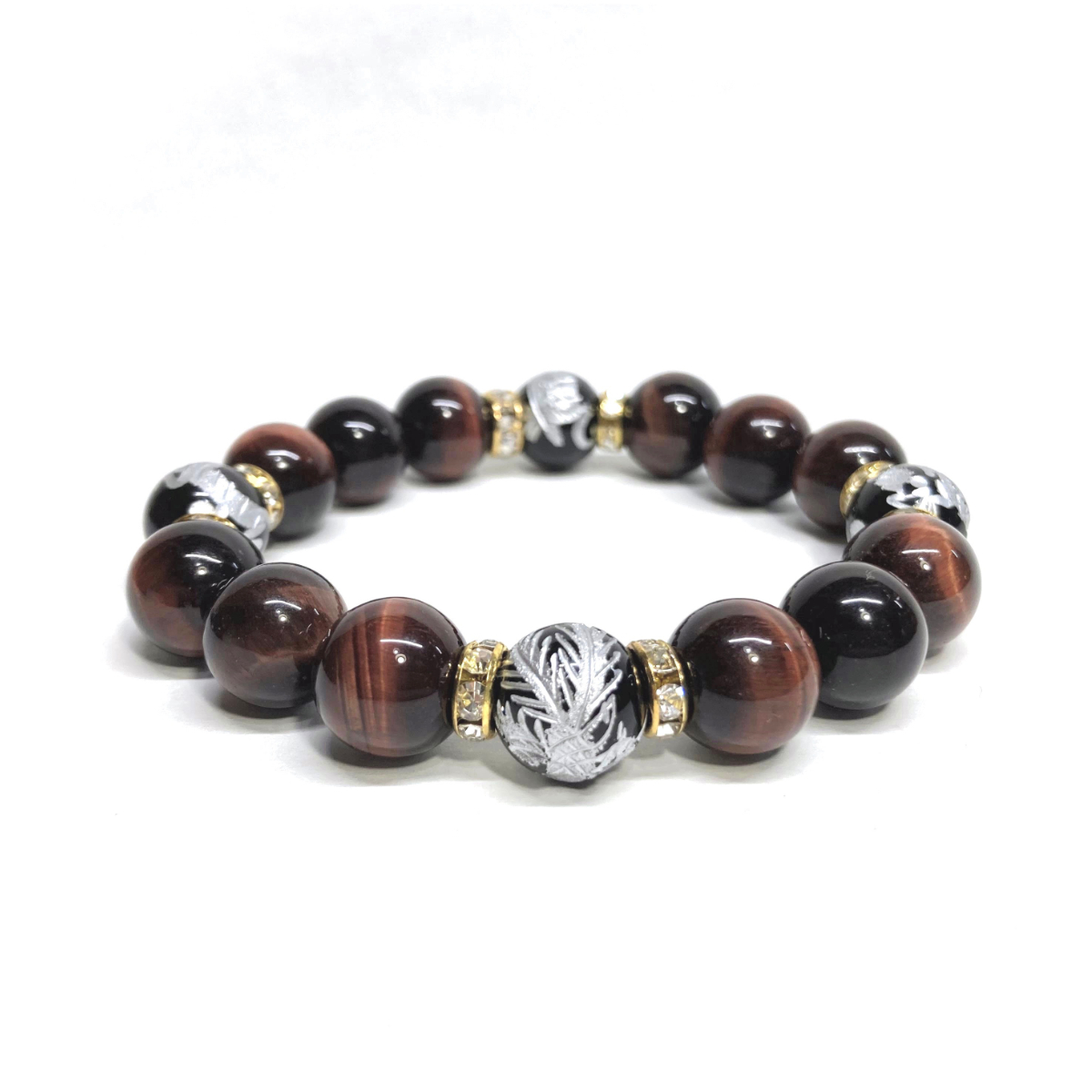 - 四神獣銀彫オニキス×レッドタイガーアイ 12mm パワーストーン ブレスレット 天然石 青龍 白虎 玄武 朱雀 運気上昇 開運 金運 お守り G