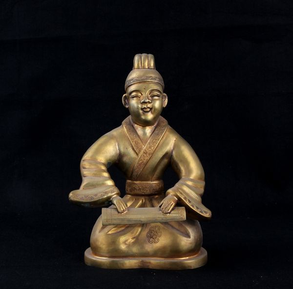 - 旧家蔵出し 中国唐物 古時代 古銅製 金塗 樂師俑 古美術品 時代物 古董品 収集家【YD-671580】