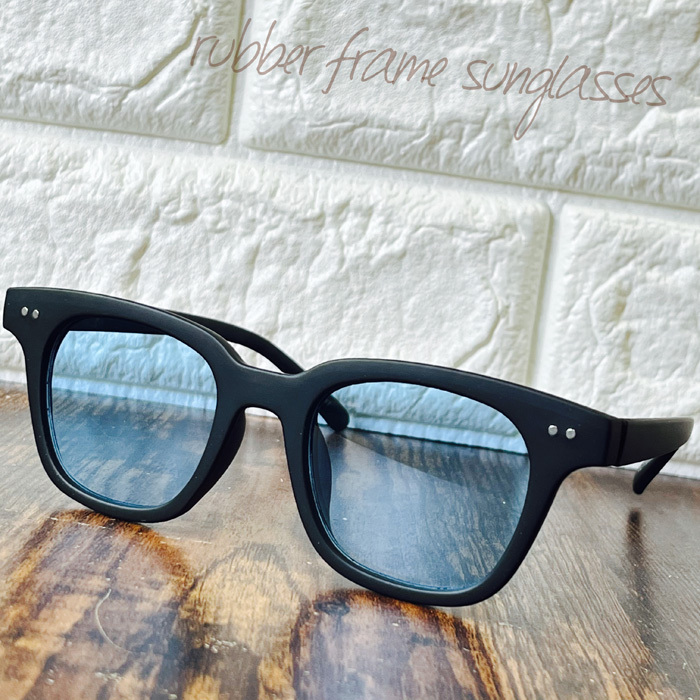 - 送料無料 サングラス スクエア ウエリントン メンズ レディース UVカット ウェリントン メガネ マットフレーム 黒縁 新品 ブルーレンズ□