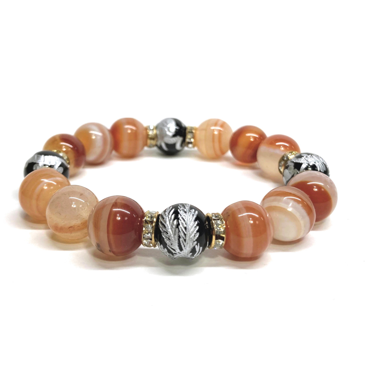 - 四神獣銀彫オニキス×カーネリアン・サードニクス 12mm パワーストーン ブレスレット 天然石 青龍 白虎 玄武 朱雀 運気上昇 四神相応 G