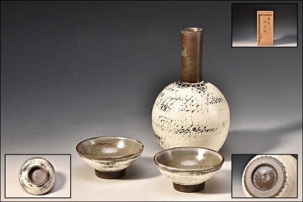 > U08747 日本芸術院 文化功労者 今井政之 圓華 酒器揃 徳利 盃 酒器 共箱 /G240