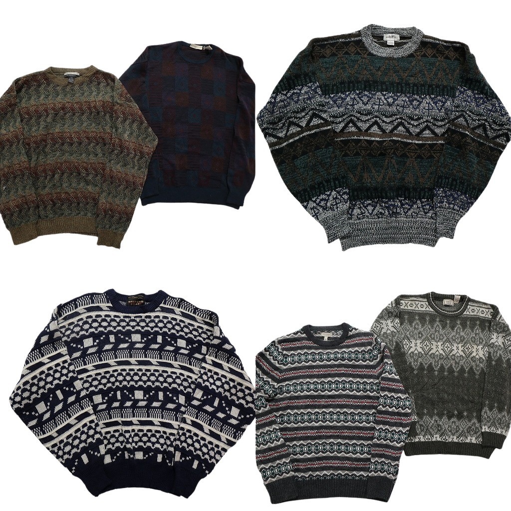 > 古着卸 まとめ売り 総柄ニット セーター 6枚セット (メンズ L ) クルーネック ダークトーン フェアアイル柄 中古 古着 NC3545