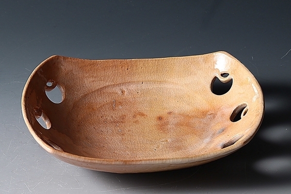 - SP9049 時代懐石道具 楽焼 白楽 船形 つぼつぼ 向付 懐石 割烹食器 舟形