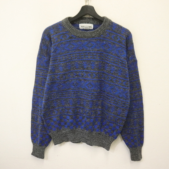 - y369 80sビンテージ EXPRESSIONS アクリルニットセーター■1980年代製 表記Sサイズ グレー 柄 アメカジ ストリート 古着 古着卸 激安 90s