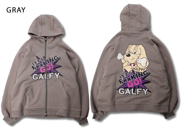 > LFG!!裏毛ジップパーカー◆GALFY グレー Lサイズ(中型犬) 153005 ガルフィー ゆったりめ オーバーサイズ ユニセックス