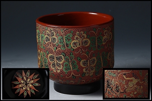 - SP1078 蒟醤 キンマ 細密 茶椀 筒茶椀 漆器 茶器