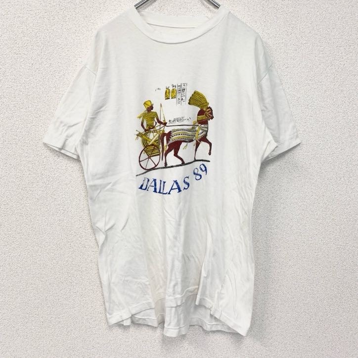 - 古着 used 90s 半袖プリントTシャツ シングルステッチ ヴィンテージ エジプト クルーネック レトロ 白 ホワイト