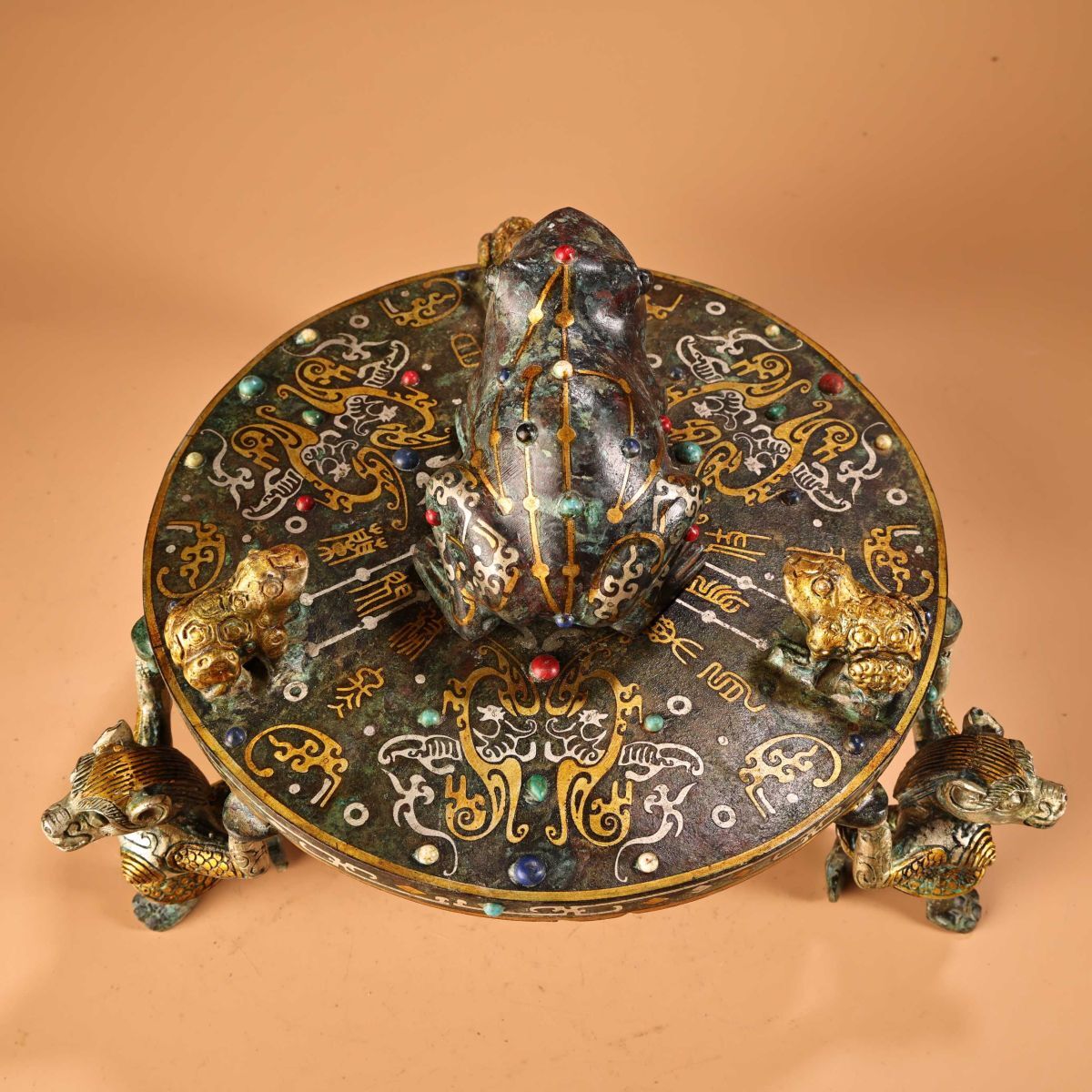 > 【永】漢代時期 青銅器 錯金錯銀 嵌寶石 七星金蟾盤 極細工 古銅彫 置物擺件 古美術品 時代物 古董品 収集 古美味骨董品 旧家蔵出 中国唐物