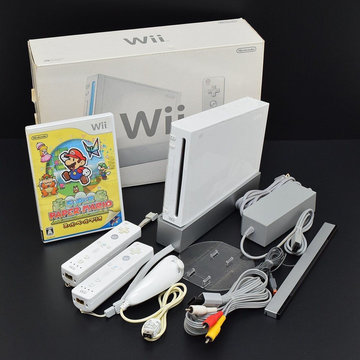 - ▽567189 【動作確認済】Nintendo ニンテンドー 任天堂 Wii 本体セット+スーパーペーパーマリオ RVL-001 除菌メンテナンス済 シロ