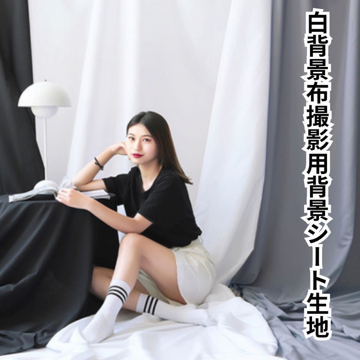 - 457 白背景布 3x4m 撮影用背景シート 生地 透けない 無反射