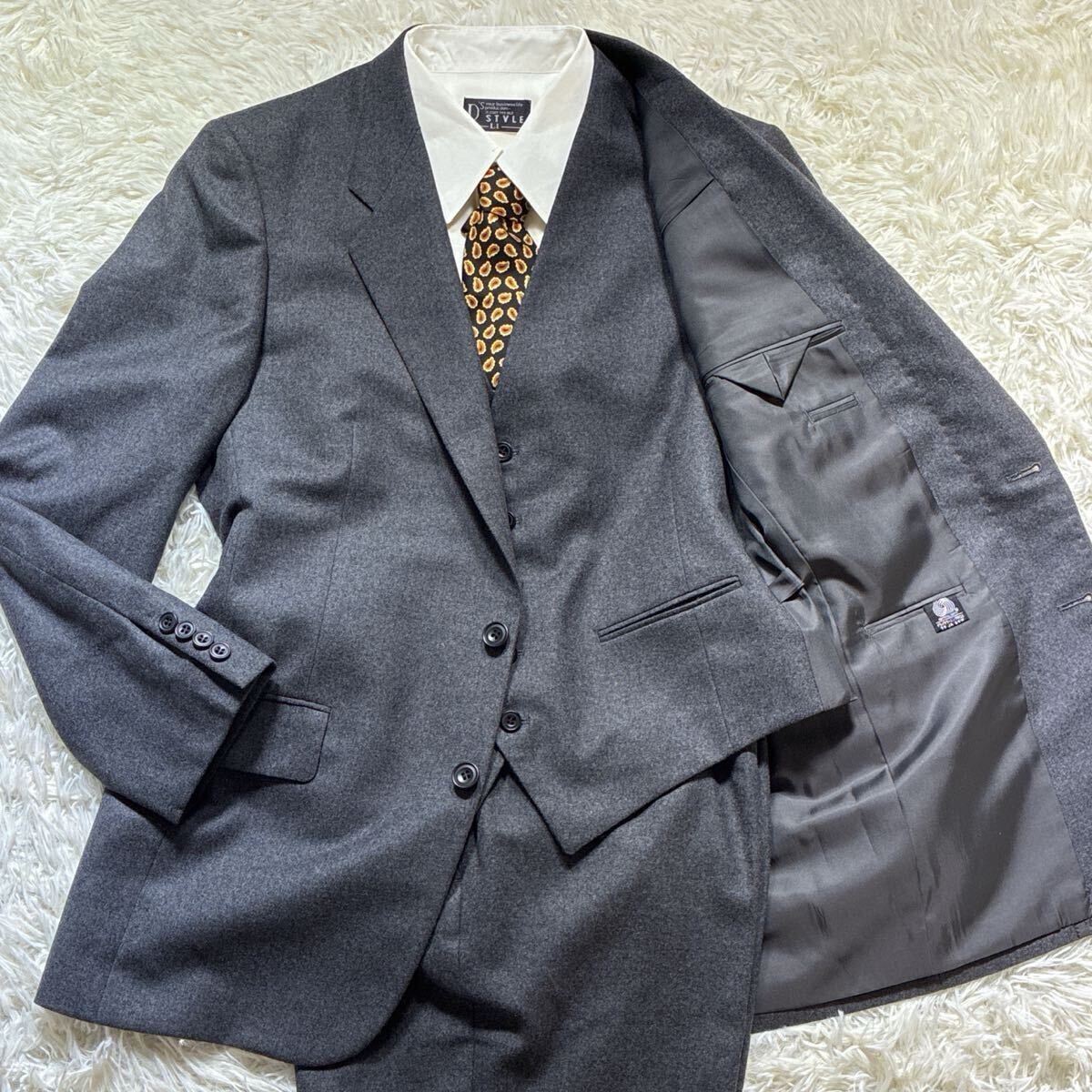 > 極美品/XL相当◎スリーピース 3ピース スーツ セットアップ 3点セット グレー AB6 ピエールカルダン テーラードジャケット ベスト メンズ