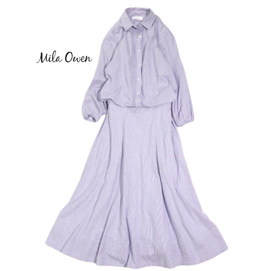 - ミラオーウェン Mila Owen セットアップ見え ストライプ シャツ ワンピース 0