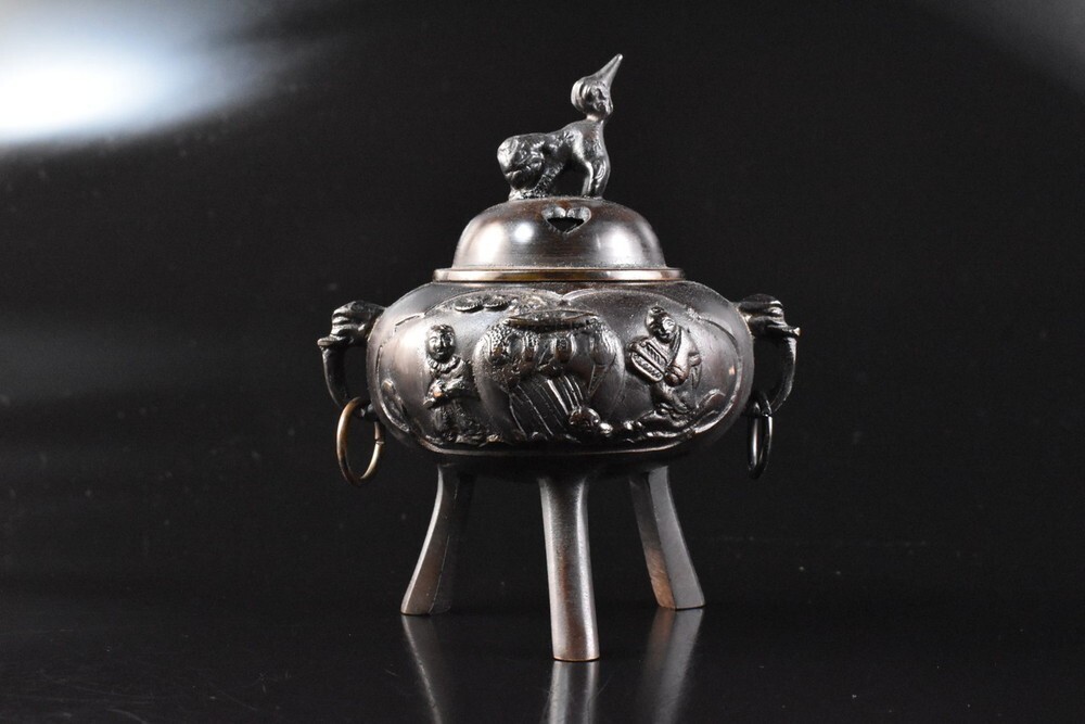 - 【雲】某資産家買取品 銅製 人物彫刻 獅子香炉 古美術品(香道具旧家蔵出) F8068