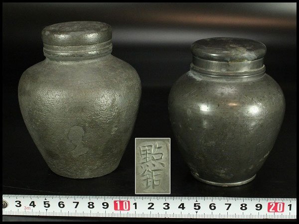 - 【金閣】中国美術 唐物 古錫 茶壺 二件 旧家蔵出 送料無料(S806)