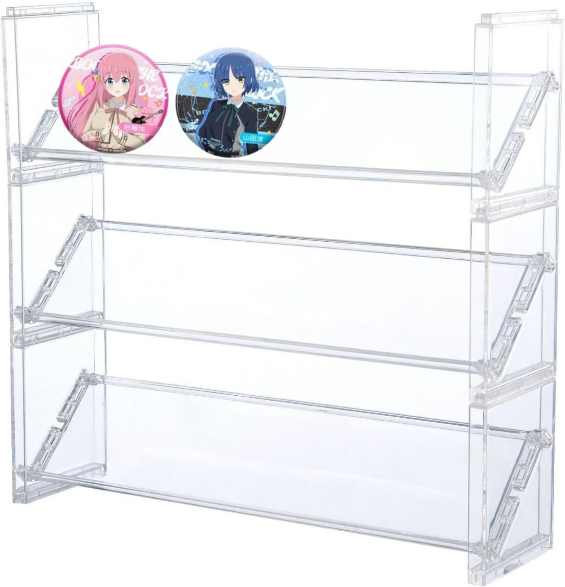 - seimeinoki 缶バッジ ディスプレイスタンド 12枚収納可能 透明製 ディスプレイ スタンド 積み重ね式 3段 長さ32cm コレクション