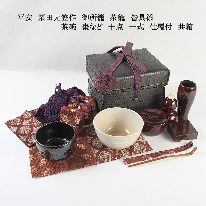 - 茶道具 平安 栗田元笠作 御所籠 茶籠 皆具添 茶碗 棗など 十点 一式 仕覆付 共箱