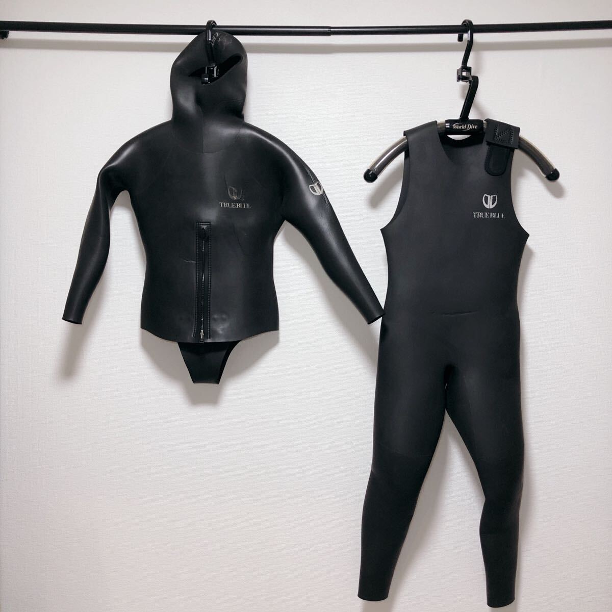 - TRUEBLUE ロクハン 2ピース カブリ ロングジョン 股かけ付 着丈 約134cm 6mm メンズ ダイビング ウェットスーツ フード付 黒 1021A-25