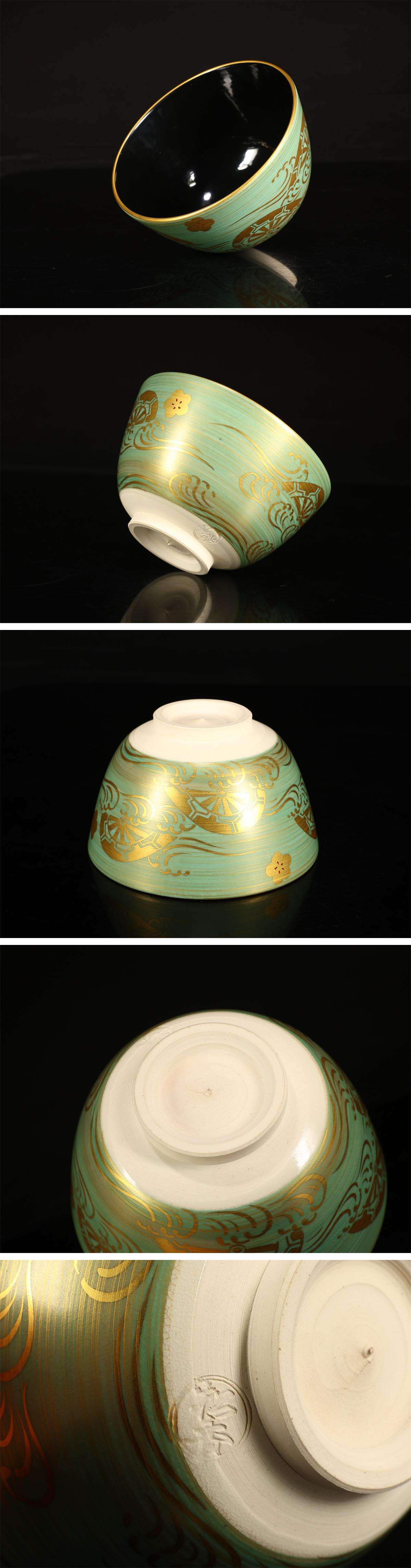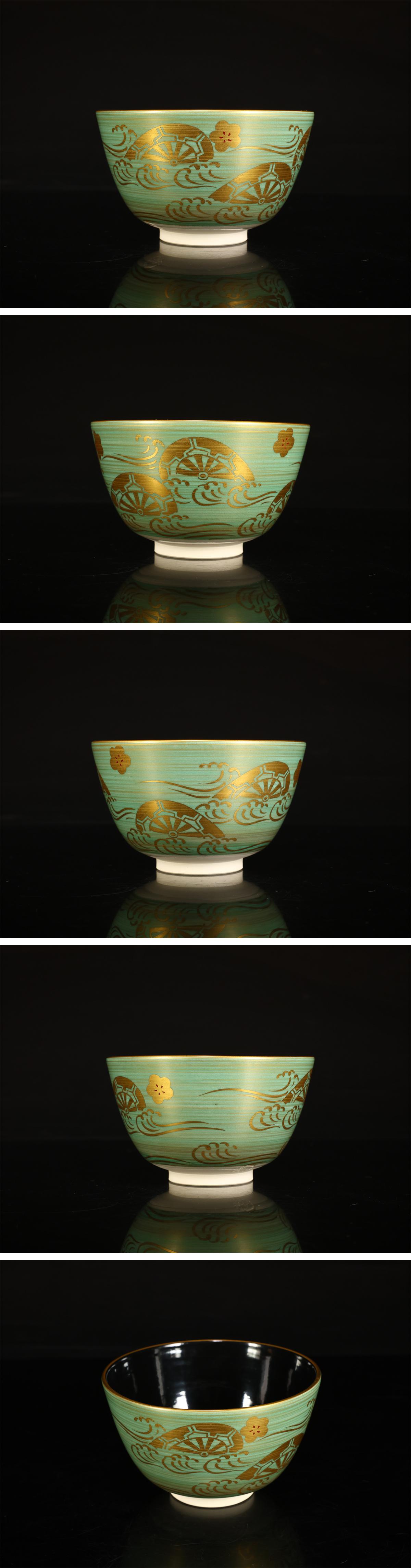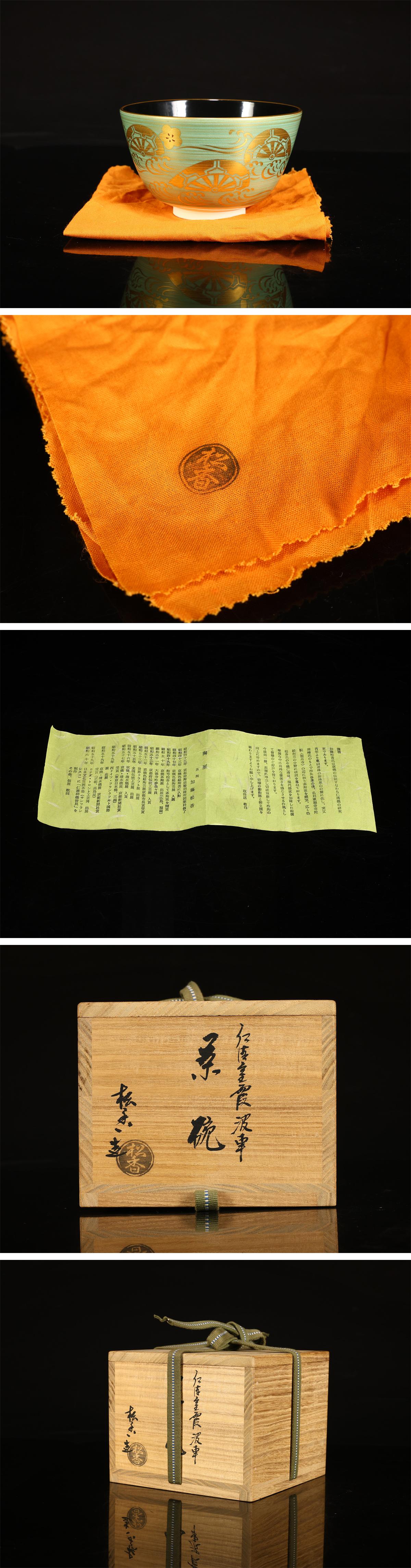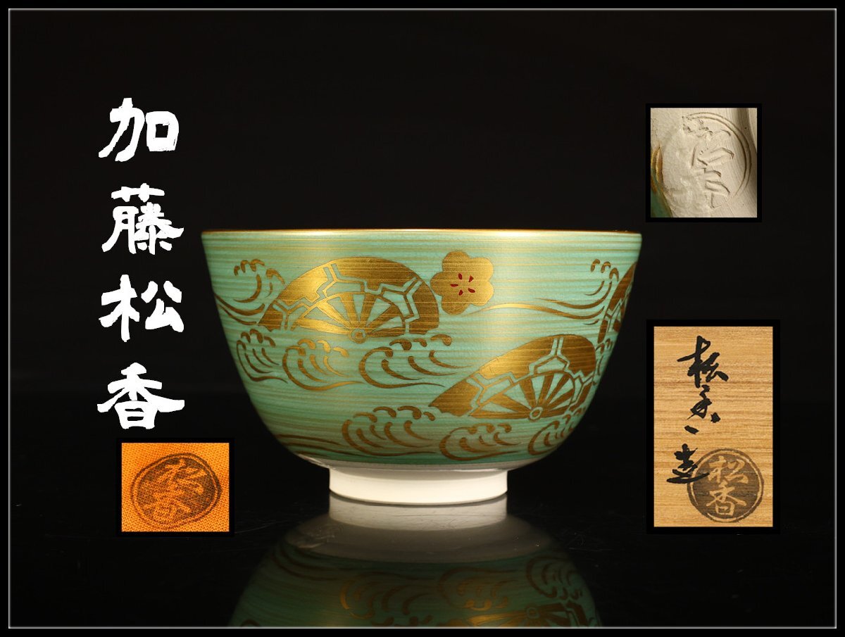 - 【吉】CN295 【加藤松香】 京焼 仁清金霞波車 茶碗/共箱付 本物保証 美品!