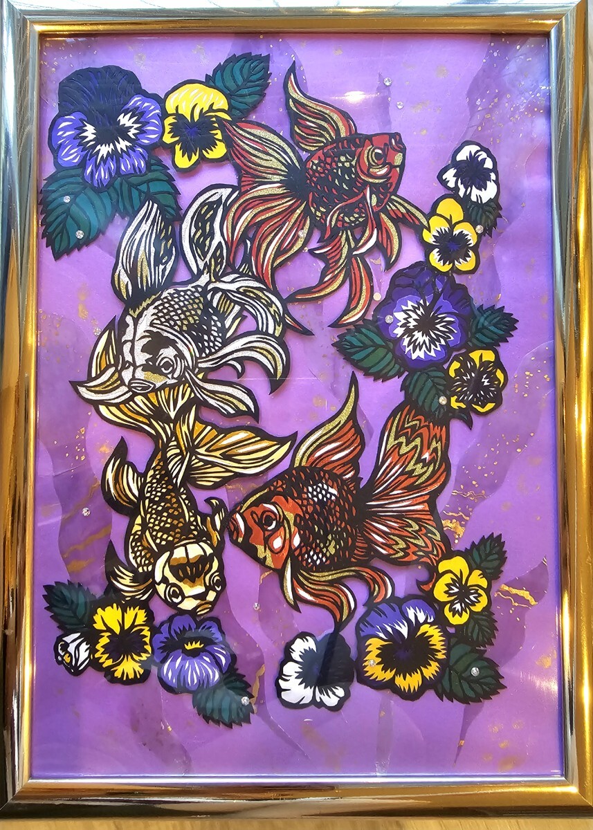 - 開運 切り絵 金魚 仕事運 財運 家庭運 良縁 浄化 一点物 風水 インテリア アート