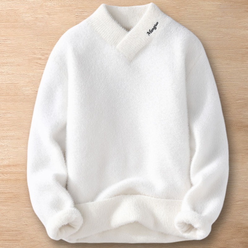 - Y221-L ホワイト 新品DCKMANY ウール混 シャギーニット セーター Vネック 暖かい 長袖 防寒 冬 メンズ カジュアル プルオーバー トップス