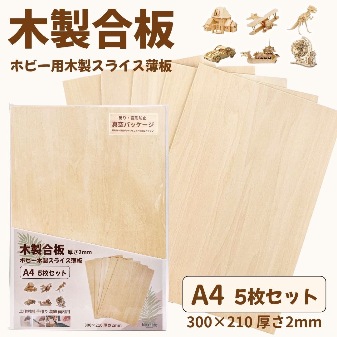 - 木製スライス薄板 A4 300×210mm 厚さ2mm 5枚セット 木製合板 ホビー用 木材スライス 板材 DIY 模型 クラフト ウッドシート ベニヤ