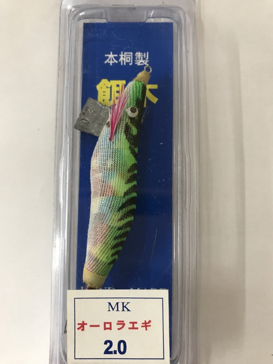 - 本桐製 餌木 MK オーロラエギ 2.0号 手作り品 グリーン×白地系 ハードルアー 海水 1点 送料無料 e-38