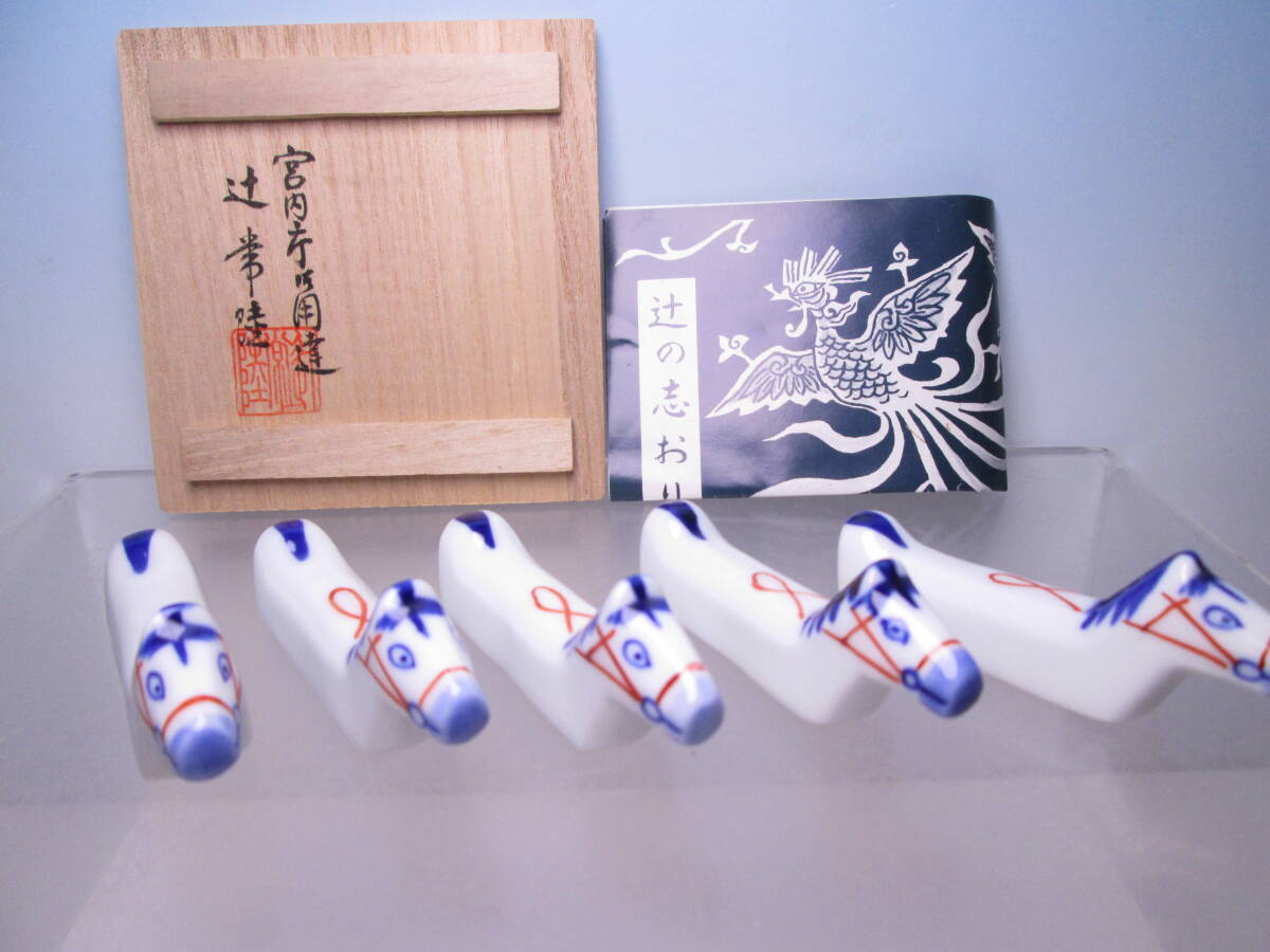 - ☆宮内庁御用達 辻常陸 色絵 干支『午』箸置 五客 A 馬