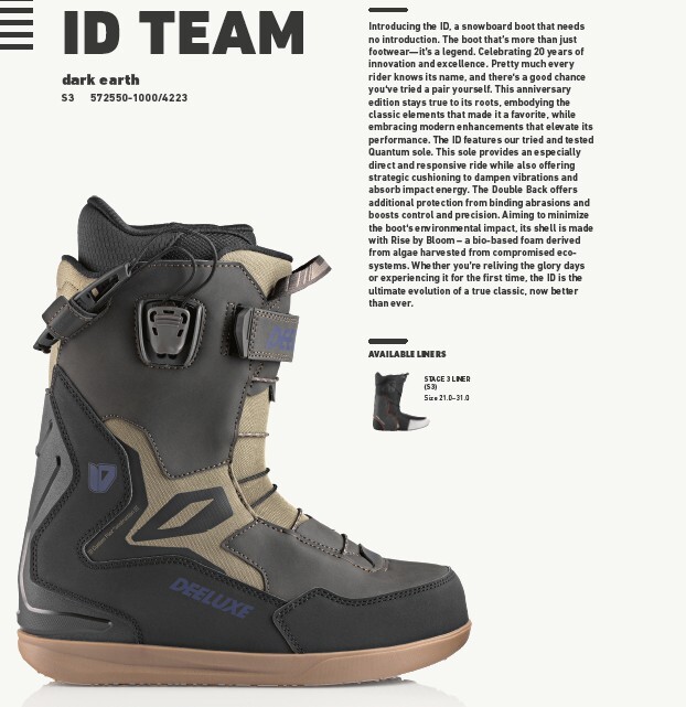 - 新品未使用 25-26 DEELUXE BOOTS ID TEAM S3 DARK EARTH 27cm あすつく 土日祝発送OK