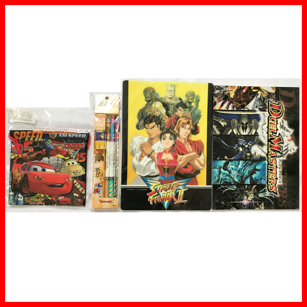 > ① カーズ 巾着② ドラクエ 鉛筆+消しゴム③ ストファーⅡ 下敷④ デュエルマスターズ ノート 4種4点 送料無料 B-104