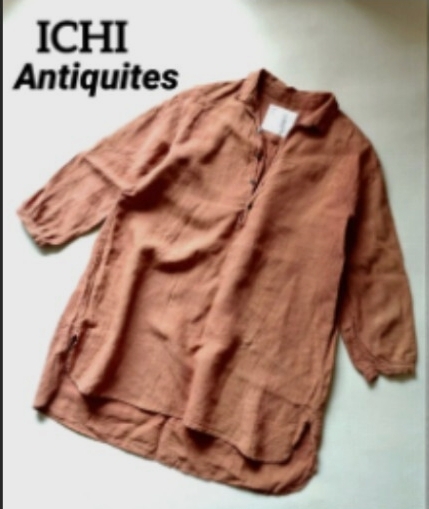 > ICHI antiquites イチアンティークス チュニック リネン100% ブラウス 麻 茶 sizeF フリー