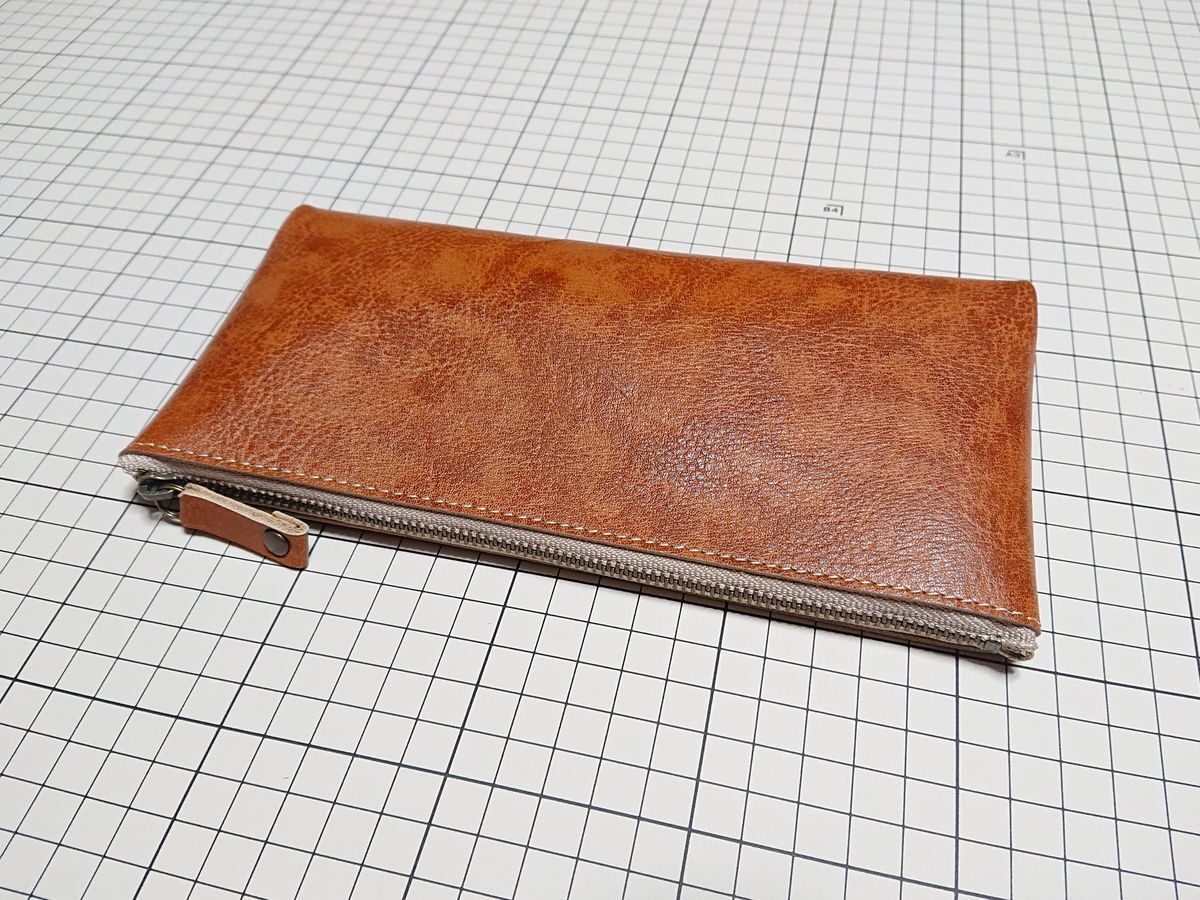 - レザー◆本革 ペンケース 牛革 210x102mm 57g M 茶系 アンティック
