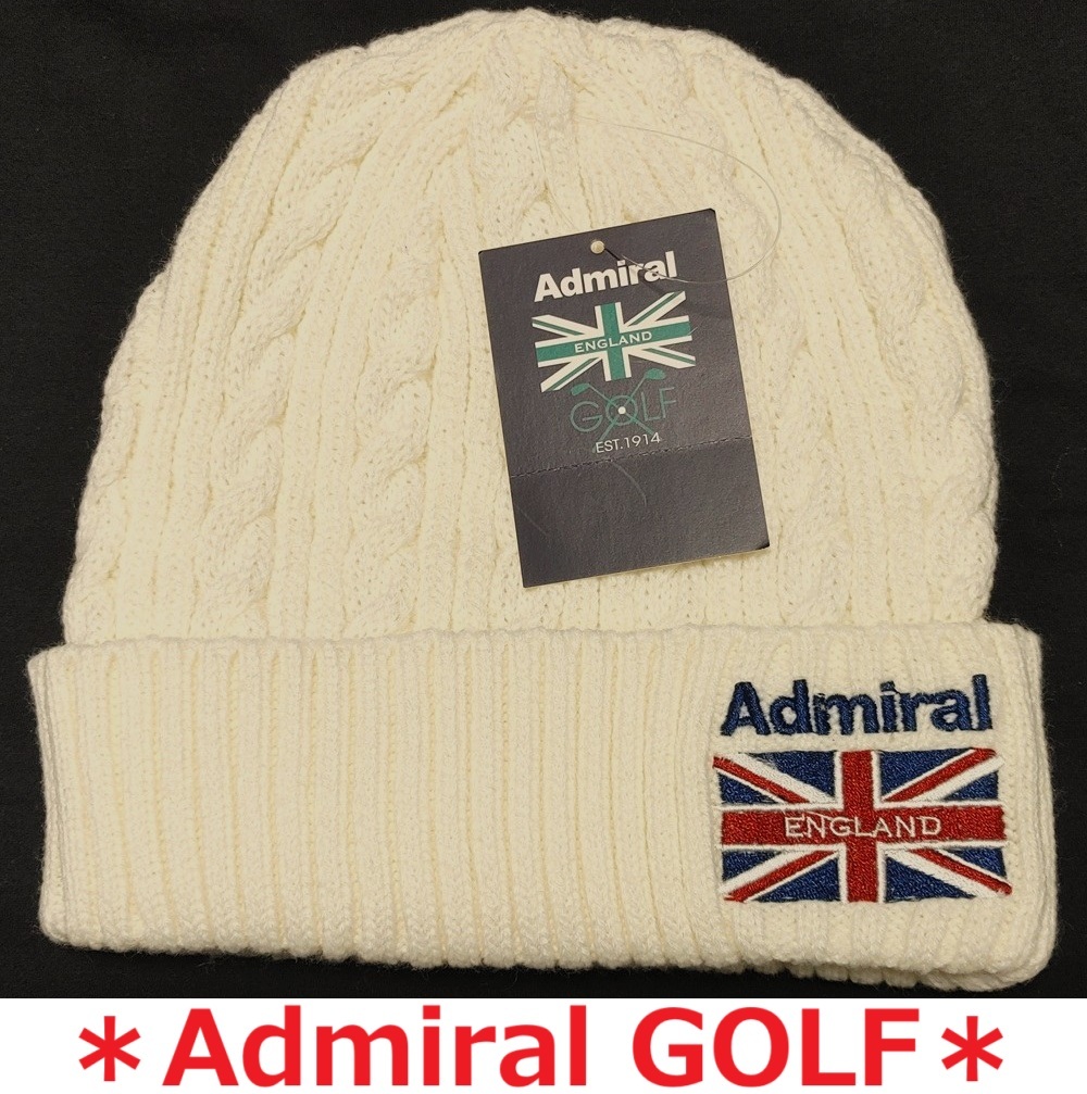- 新品 ADMIRAL GOLF 白 アドミラル ニットキャップ ロゴ ケーブル編み ゴルフウエア メンズ レディース オフホワイト ニット帽 防寒 帽子 冬