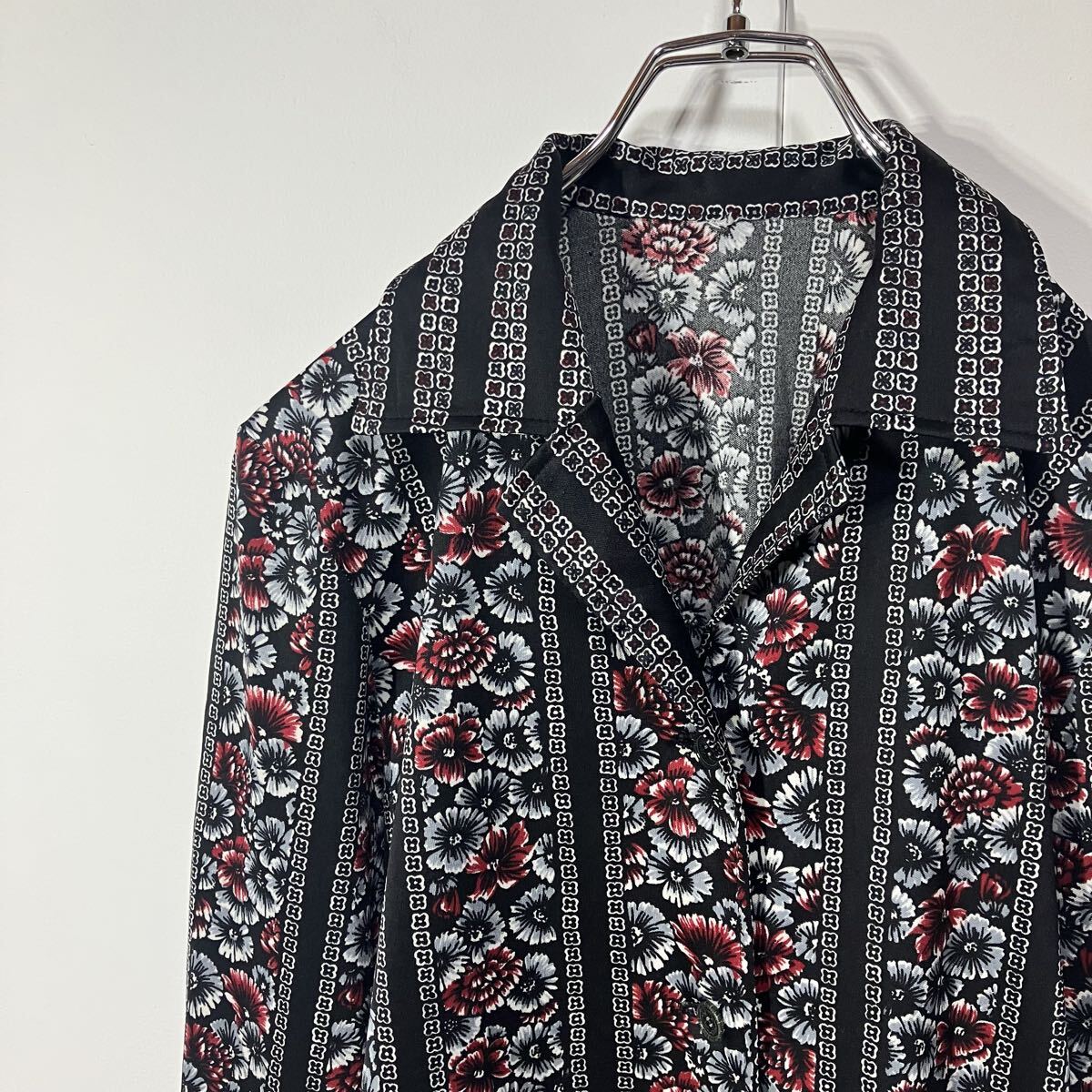 > 古着 ヴィンテージ 花柄 ストライプ レトロ 開襟 オープンカラー スクエアカット ニット 長袖 シャツ ブラック グレー レッド ホワイト 13