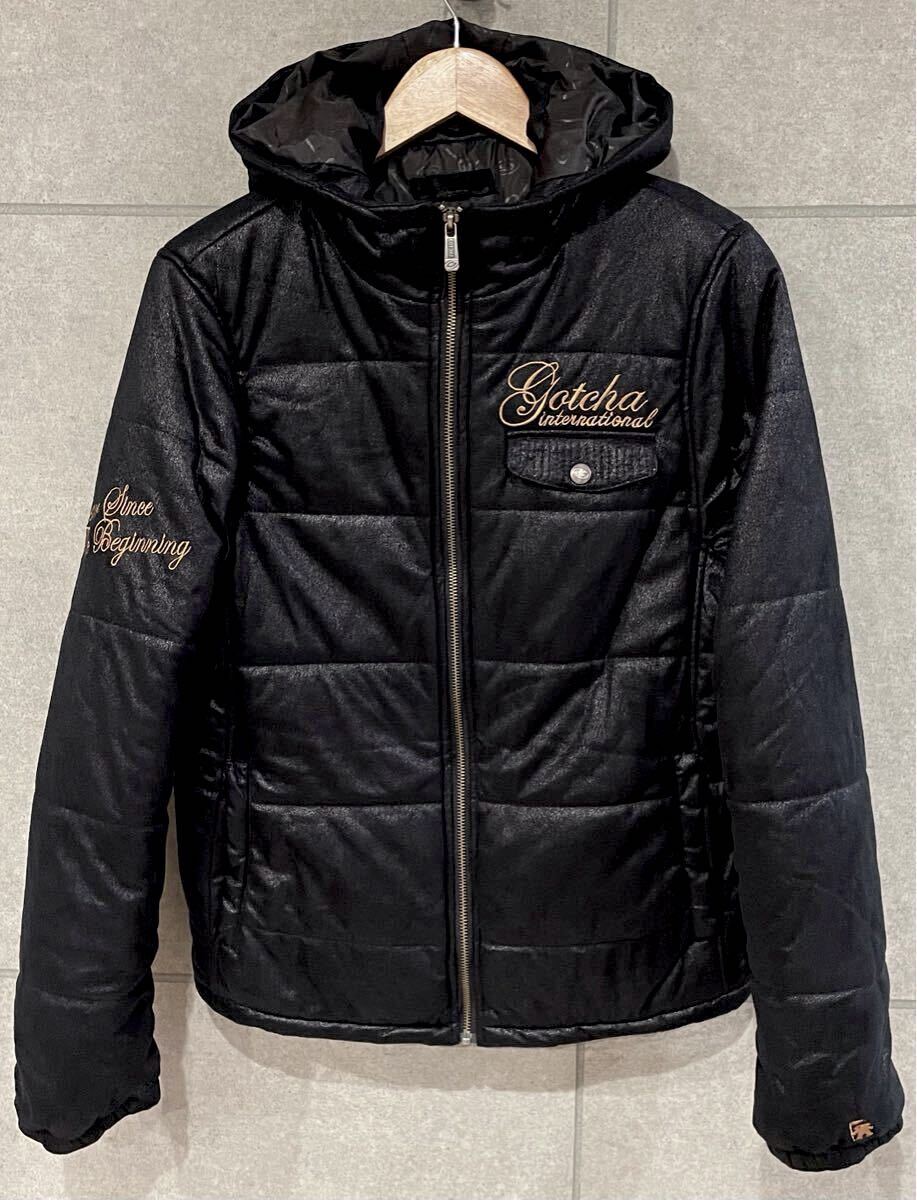 > ゴルフにも! GOTCHA ガッチャ ロゴ刺繍 中綿ジャケット ジップアップ フーディ ブラック Mサイズ メンズ 送料込 新規×