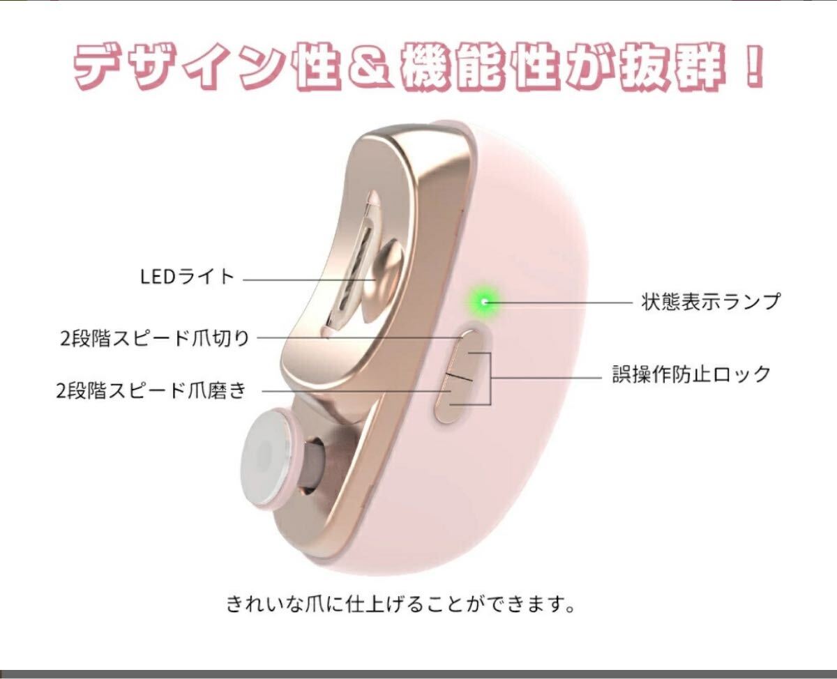 - 電動爪切り 爪切り 電動つめ削り 足の爪 2in1 爪磨き つめきり 角質ケア 爪やすり LEDライト付き 静音 巻き爪 厚い爪 爪ケア