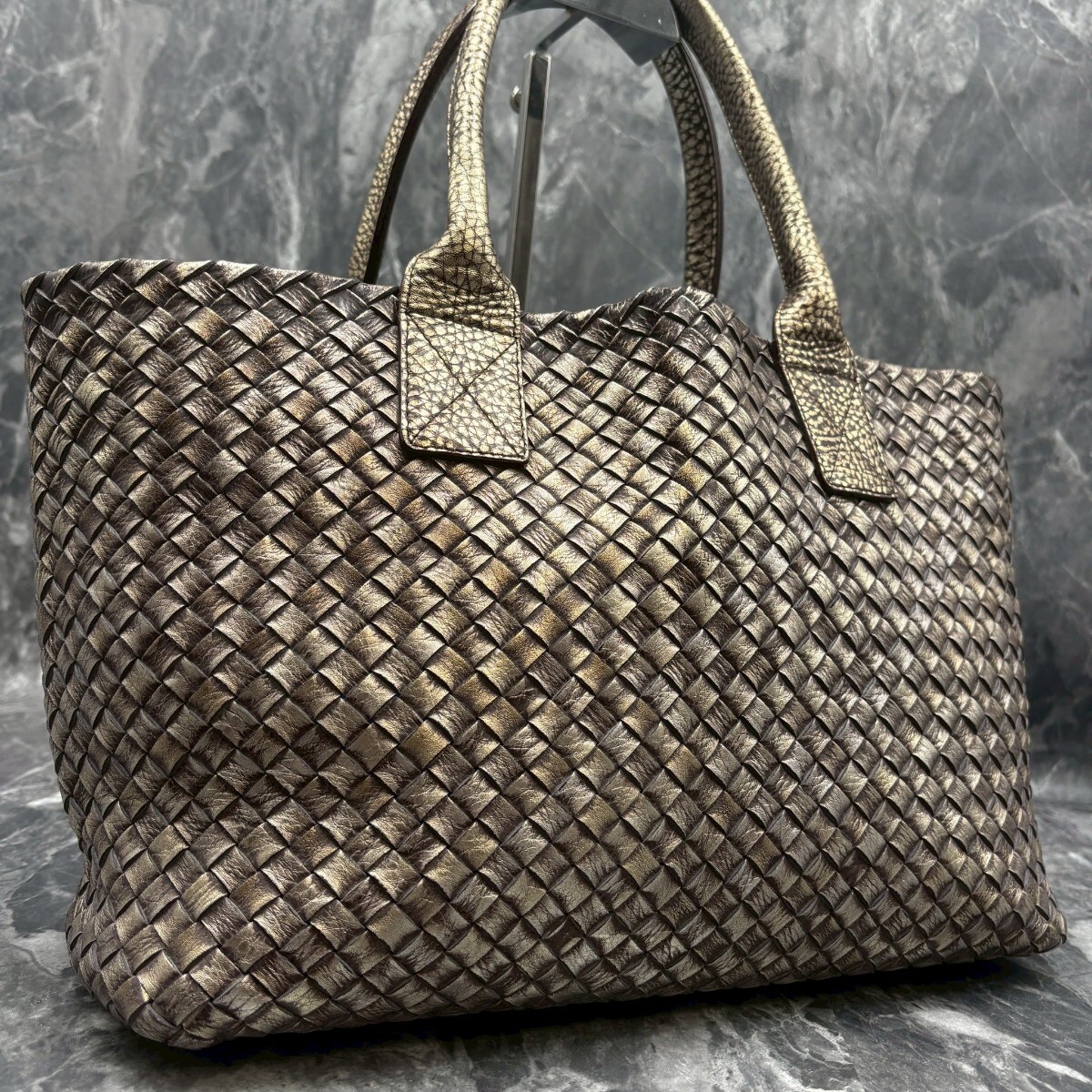 - 【美品】BOTTEGA VENETA ボッテガヴェネタ カバ PM イントレチャート トートバッグ メンズ 自立 大容量 ハンドバッグ ゴールド