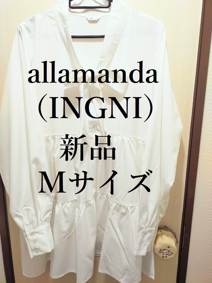 - 【新品】allamanda リボンタイティアードロング丈ブラウス ホワイト Mサイズ