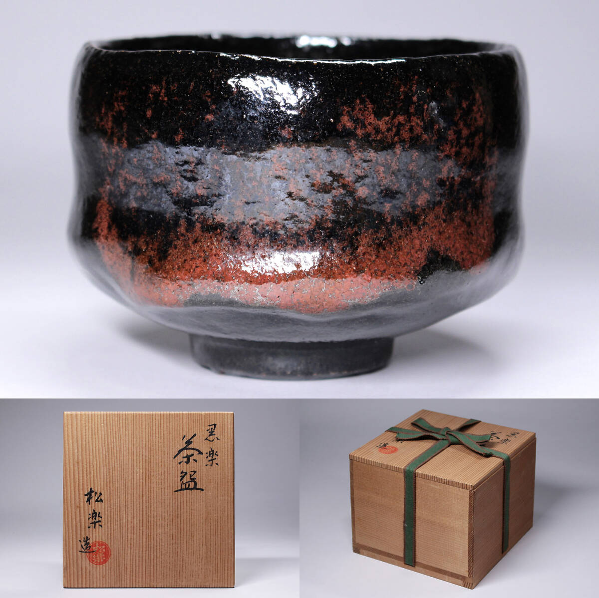 - 佐々木松楽 黒楽 茶碗 共箱 検索: 尾形乾山 楽吉左エ門 ノンコウ 人間国宝 光悦 Matcha Bowl Mt.Fuji